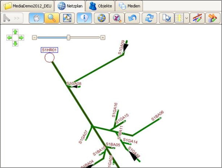 Die Startwerte für die georeferenzierte Inspektion werden aus dem GIS des Anwenders in die Inspektionssoftware IKAS Evolution übertragen. Ausgehend von den Startkoordinaten wird die Lage der Satellitenkamera während des Vorschubs mittels eines in die Kamera integrierten 3D-Sensors gemessen. Der 3D-Sensor ist ein Trägheitsnavigationssystem, das aus einer dreiachsigen Beschleunigungssensor- Einheit und einem dreiachsigen Gyroskop (Drehratensensor) besteht. Mit Hilfe dieser sechs Sensoren können Kurs-, Neige- und Rollwinkel bestimmt werden, aus denen sich die xyz-Koordinaten und somit die Position der Kamera ergeben. Diese 3D-Daten können dann wieder in das GIS des Anwenders übertragen werden.